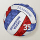 Dit schattige volleybalteam kleurt kussen voor meisjes met aangepaste team- en schoolmascottennaam met het realistische gestileerde afbeelding van een rood, blauw en wit volleybal met een kunstzinnig bloemenkaleidoscopisch patroon gemengd met zijn rode en blauwe panelen - haar naam en teamnaam zijn aanpasbaar, net als haar jersey-nummer - door katz_d_zynes