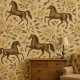 Breng tijdloze elegantie aan uw wanden met dit paardenbehang, met sierlijke bruine paarden in het midden van de galop, omringd door delicate beige rozen en bladerrijke wijnstokken. De zachte, antiek tinten en handgetekende stijl geven dit ontwerp een klassiek, romantisch gevoel - ideaal voor paardenliefhebbers, rustieke interieurs, landhuizen of ruimtes met een thema. Dit behang voegt karakter, warmte en beweging toe aan elke kamer met zijn unieke mix van natuur en edele dieren.