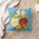 Veelzijdige kussens met een blauwe achtergrond met bloemen aan de ene kant en een vlakke vormgeving aan de andere kant.