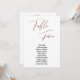Dit eenvoudige, elegante ontwerp kenmerkt "Lijst Vijf"die in een modern handschrift wordt teruggegeven en met een faux-metallisch goudeffect van het roos in reliëf gemaakt. Het lettertype voor namen kan worden gewijzigd als u dat wenst. Zoals de achtergrondkleur. De details zullen op zowel voor als rug verschijnen. // 151 //