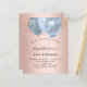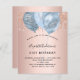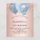 Voor een elegante 21ste (of om het even welke leeftijd) verjaardag. Een roos gouden faux metallische achtergrond. Gedecorreerd met roos goud, roze faux glitterdruppels, verfdruppelende blik en blauwe ballonnen. Pas een naam, leeftijd 21 jaar en partijdetails aan en voeg deze toe. De naam wordt geschreven met een handgeschreven stijlmanuscript met letters. Blauwe mariniers