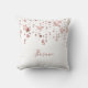 Een elegant, glamoureus kussen voor een meisjeskamer, interieur. Faux roos goud, koperen sterren. Een chique witte achtergrond. Plaats jouw naam aan de voorzijde, geschreven met een modern handgeschreven stijlscript. Roos goudkleurige letters.