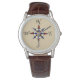 Een kompas roos op een bruine achtergrond maakt een perfect nautisch accessoire voor de booteigenaar, voor cruisen, een zeeman of zeiler.