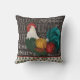 Dit geïllustreerde Rooster maakt een krijtbord dat gevuld is met ochtendgroeten! Een kleurrijke en grafische landstijl kussen die gesprekken beginnen.