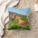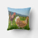 Deze prachtige kleurrijke gooikussens zal een adem van het platteland in je huis brengen. Het show een kaakhaanhaan die hardnekkig naar een kip loopt in een voorjaarsbloem die ik in Frankrijk zag en schetste.
