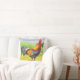 Een kleurpotloodtekening van een prachtige, kleurrijke Rooster siert dit kussen!