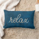 Lichtgekleurde RELAX tekst in een nautisch touwontwerp op blauw leer. De achtergrond kan worden gewijzigd.