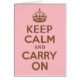 Version moderne de l'affiche vintage "Keep Calm and Carry On" en rose et marron.