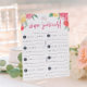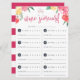 Ontworpen om te passen bij onze Rosé Garden wijnproeverij bruidsdouche uitnodigingen, kaarten met levendig gekleurde waterverf bloemen met twee klinkende wijnglazen aan de bovenkant en "wijn scorekaart" in roze handgeschreven script. Ruimte hieronder voor proefnotities en beoordelingen van acht wijnen.
