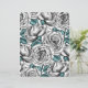 Beau motif numérique peint à la main, roses blanches avec feuilles bleues.