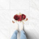 Elegant Red Roses with gold greenery and butterflies.