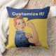 Rosie de Riveter. De achtergrond en de bannerkleur van de douane. De tekst van de douane aan beide kanten.