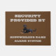Rottweiler hondendoormat voor Rottie-eigenaars - Leest 'Beveiliging geboden door' bovenaan in bleke grijze, retro atletische stijl, vetgedrukt lettertype. De onderkant heeft de naam van de hond gepersonaliseerd en staat op 'Alarm System'. Foto van een waakzame Rottweiler in het midden. Bruine achtergrond. Zowel achtergrondkleur als tekststijl, kleur, of grootte kunnen worden veranderd. Het zou een perfect huisverwarmingsgeschenk zijn voor de Rottweiler-eigenaar of een schattig geschenk voor de nieuwe eigenaar van een Rottie-puppy. Wij hebben het coördineren van het huisdecor van Rottweiler en andere giften van het hondenliefhebber van Rottweiler in onze winkel Zazzle.com/angela65*.