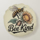 Wees aardig rond kussen. Beschikt over schattige bijen met koperen waterbus en grote zonnebloem. Geweldig voor elke home decor.