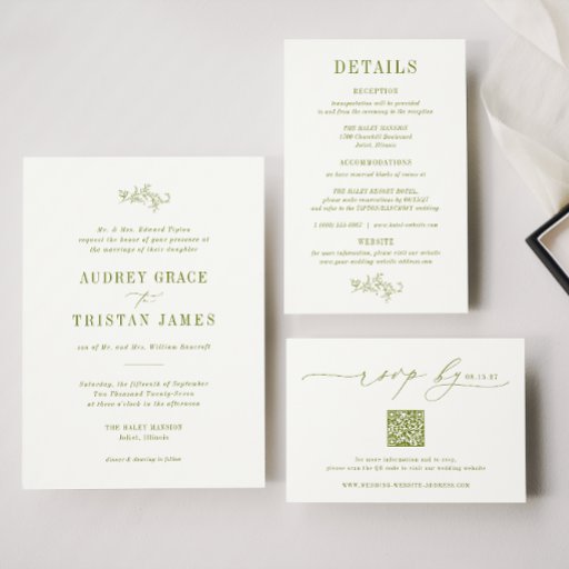 ROWAN, botanical return address label. Features, soft ivory background, moss green typography and vintage botanical illustration. Fonts and colors can be customized using the design tool feature.