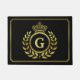 Royal Crown Laurel Wreath Black Gold Monogramed Deurmat