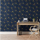 Royal Elegant Blauw & Goud Bloemen Botanisch Patro Behang