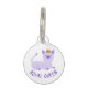 Grappig label voor je dierbare kat! Er is een afbeelding van een paarse kat die met haar hoofd omhoog gehouden met een kroon op haar hoofd ligt. De tekst hieronder zegt "Koningin". U kunt de naam van uw kat en uw telefoonnummer op de achterkant van dit label toevoegen.
