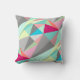 Roze Abstracte driehoekspatroon, Aqua Yellow Grijs Kussen