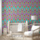 Roze Blauw Sinaasappel Zwart Zig-zag patroonschil Behang