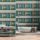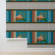 Roze Bloem Goud Hart Blauw Grijs Bruin Gestreepte Behang