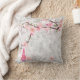 Roze bloesems en vaas Delicate roze japanse bloesem op takken in waterverf japanse stijl, op een zilverkleurige gebarsten achtergrond - een delicate roze vaas aan de onderkant - de achterkant van dit kussen is anders voor 2 looks met een decor kussen:)