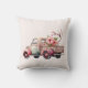 Een kussen met een leuke grillige waterverf illustratie. Perzik en roze kleuren. Pickup truck met een ouderwetse houten rug/bed met kersenbloesem bloemen.