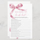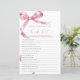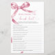 Pink Bow "Who Knows The Bride Best" Game – Voeg wat plezier toe aan je vrijgezellenfeest met deze charmante gamekaart met een delicaat blush roze boogontwerp. Deze "Who Knows The Bride Best" -game is perfect voor het boeien van gasten en het vieren van de bruid-to-be in stijl. Met een elegant script en vrouwelijke accenten is deze speelkaart een mooie aanvulling op elk thema van het vrijgezellenfeest, waardoor het een gedenkwaardige herinnering is voor de bruid en haar geliefden. *** Voer H121 in de zoekopdracht in de winkel in om alle overeenkomende items te vinden *** Of bezoek ons Pink Bow-Collectie. *** Dit hoogwaardige ontwerp is gemakkelijk aan te passen aan uw trouwkleuren, stijlen en thema. Klik voor verdere aanpassingen op de link Bewerken met de ontwerptool en gebruik onze ontwerptool om deze sjabloon te wijzigen. Neem contact met mij op als u hulp nodig hebt of overeenkomende objecten nodig hebt.