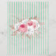 Het en vrouwelijke ontwerp is voorzien van grote bouquet met roze rozen en andere bloemstukken en bladeren op de achtergrond van noodlijdende munt en bleke roze strepen. OPMERKING: Bouquet in verschillende posities voor en achter