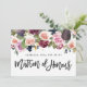 Roze, Bourgogne en vijgenflorale matron van eremachtkaart. Waterverf, bloesem, foliage en met de hand geschilde vruchten. Deel van een trouwsuite.
