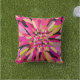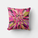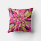 Dit worpkussen heeft een abstracte bloemkleur in de kleuren roze, rood, sinaasappel, paarse, chartreuse, olijfgroen, wijn en lavendel op een zwarte achtergrond.