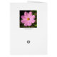 Een groetings kaart met een aantrekkelijk midden uitgelijnd vierkant Instagram stijlfoto van een roze kosmos bloem. Kleinere herhaling van het afbeelding op de achterzijde, met titel en fotograaf/kunstenaar, enz. Deze kaart kan ook worden aangepast.
