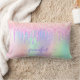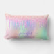 Een trendy holografische achtergrond met eenhoorn en regenboog, holografische kleuren in roze, paarse, mintgroen. Versierd met druppels in roze en paarse. Personaliseer en voeg een naam toe, geschreven met een modern handgeschreven stijlscript met moerassen. Paarse letters. Als u wilt dat de swashes alleen de voorbeeldnaam verwijderen, laat u de spaties of emoji's voor en achter de naam staan.