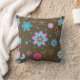 Roze en Blauwe Floral Pattern Bruin Sierkussen