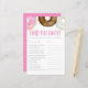 Mingle met de gasten om de antwoorden op de vragen te vinden! Voeg dit plezier de Gastspelkaart bij je baby shower. Deze baby shower trivia-spelkaart is voorzien van roze, witte en chocoladedonuts met kleurrijke sproinkles. Personaliseer door namen, gebeurtenis en datum toe te voegen. Deze waterverf geeft baby shower spel.. is perfect voor 'Het is een meisje baby shower'.