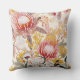 Bloemen kussen met opvallende roze protea bloeit met geel gebladerte in een ontwerp dat aardse tinten in evenwicht brengt met subtiele bloemige hoogtepunten. Proteas staan symbool voor kracht, moed en veerkracht, aangezien het plant overleeft in extreme klimaatomstandigheden.