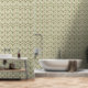 Mooie roze en witte magnolia bloemen bedekken dit behang, dat lijkt op een patroon. Zeer lief en romantisch cottage core design, perfect voor elke inrichting.