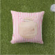 Deze roze en witte gestreepte kussen hebben een verse kokosnoot drink met een cocktailparaplu en gestreept stro. Je kunt je personaliseren met een naam.