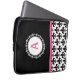 Deze elegante en schattige laptophoes heeft een zwart, wit en fuchsia roze fleur de lis design en het initiaal van uw keuze.