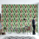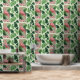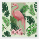 Een roze flamingo met tropische bladeren en roze lelies allemaal in een achtergrond van lichtgroen