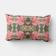 Het roze bloemenpatroon op dit Lumbale Kussen is gemaakt van een originele foto van ZoeSPEAK van roze jatropha bloemen en knoppen die bloeien in de tuin. De close-upfoto show het gele midden van de bloem te midden van de roze bloemblaadjes. De groene bladeren van de bloem op een beige achtergrond maken het patroon af.