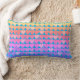 Dit comfortabele lumbale kussen / kussen / gooien kussen heeft een girly, , boho-stijl patroon van handgetekende watergekleurde harten in zachte tinten van roze, lila, geel, sinaasappel en turquoise blauw aan beide zijden