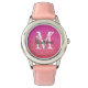 Roze Glitter Sparkle Monogram Name Watch Ontworpen met felroze en goudfaux glitter achtergrond en wit monogram initiaal op het midden. Gepersonaliseerd met naam in grijs kalligrafiesmanuscript dat. Het maakt een geweldig cadeauidee voor een meisje dat van glitter houdt. KLIK DE OPTIE VAN DE SJABLOON PERSONALIZE EN GA NAAM EN MONOGRAM IN