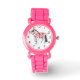 Origineel roze Valentijn hart paard van equine artiest Carolyn McFann van Two Spinnende Cats Studio gedrukt op een aanpasbaar meisjeshorloge.