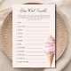Baby shower Baby Word Scramble spel blad, met bewerkbare spel instructies - leuke woord puzzel activiteit om te spelen op je schattige baby shower. Schattige ijsthema meisje baby shower baby Word scramble kaart met waterverf illustratie van roze ijs op een wafel kegel. De woordenlijst op deze kaart is allemaal gerelateerd aan baby's en ze zijn roerei. De gasten gaan strijden die ze allemaal eerst kunnen ontwarren! ANTWOORDSLEUTEL: 1. Melk 2. autostoel 3.Labor 4. Koliek 5. boek 6. doekjes 7. wieg 8. kinderkamer 9. Baby 10. Cradle 11. lotion 12. teddybeer.