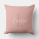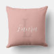 Eenvoudige unieke moderne roze stoffige roze monogram en naam gepersonaliseerde kussensloop met een witte chic signature script.