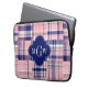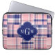 Roze, Navy Blue Preppy Patchwork Madras Monogram Laptop Sleeve