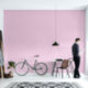 Een roze op stoffige roze gelijkmatig gespreide strepen herhaal patroon behang.