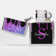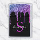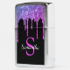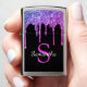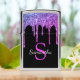 Geniet van dit elegante ontwerp met jouw naam en monogram of initiaal met kic en licht roze, paarse en blauwe glitter die over een zwarte achtergrond druppelt.