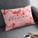 Kerstvakantie kussen met een leuke roze achtergrond, mooie rode waterverf lint en boog, het woord "kerst" in een elegant script lettertype, en uw familienaam.